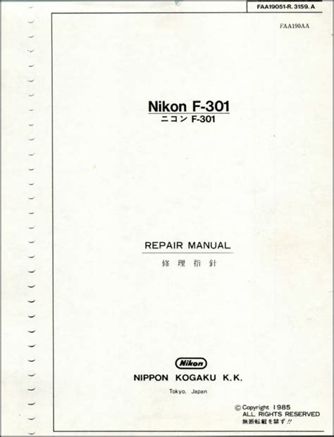 Digital Presentation Of A Genuine Nikon N2000 F301 Service Manual, Parts List And Exploded Views.
