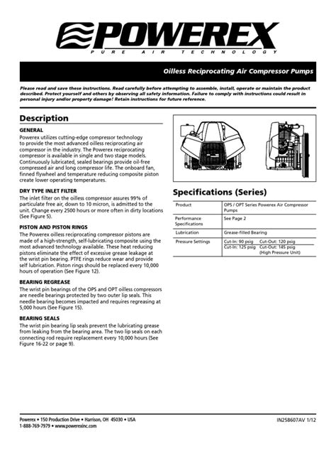 Powerex air compressors and vacuum systems are the industry leader for delivering pure air for a wide range of applications. Ops series water pump pdf manual download. Web description the powerex oilless reciprocating air compressor has advanced compressor technology through the development of a completely oilless unit.