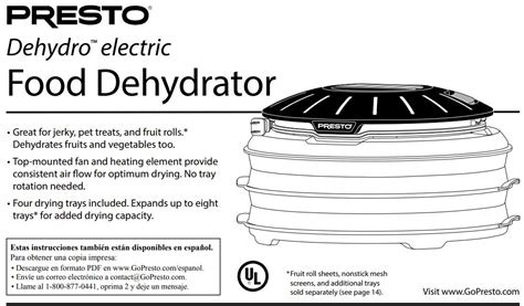 Presto Dehydro Manual. Web view and download presto dehydro electric food dehydrator instructions manual online. Web view and download presto dehydro instructions manual online.